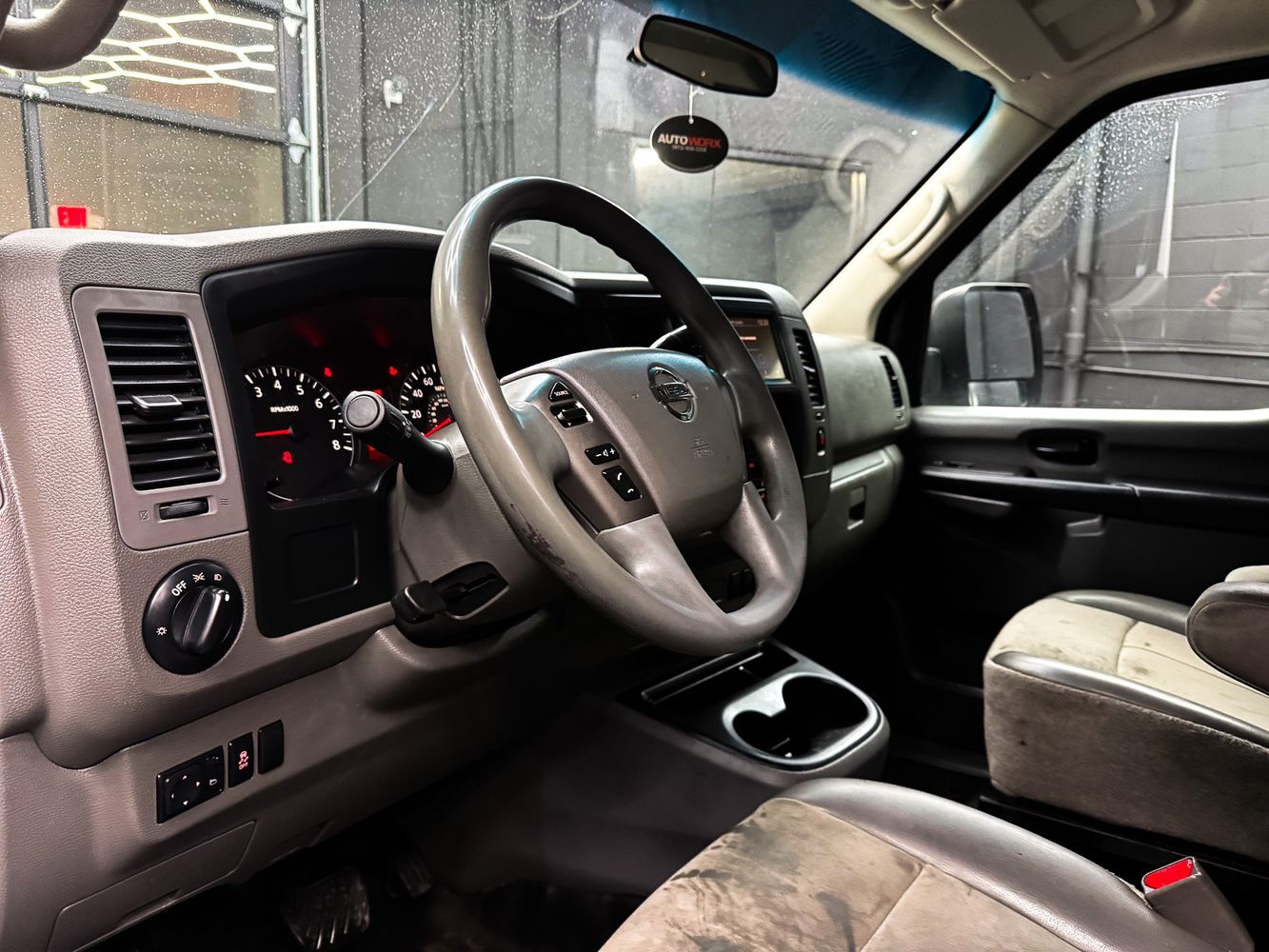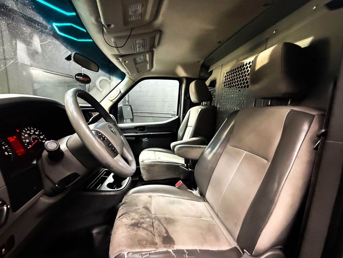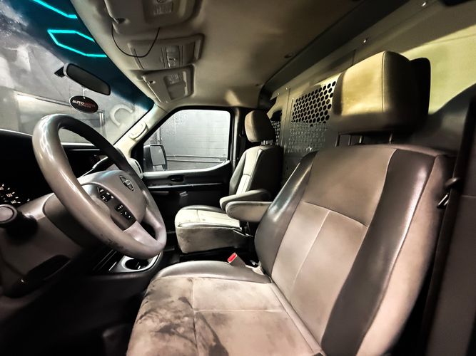 Front seatback upholstery: Plastic front seatback upholstery